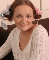 Who says that only little girls should wear flowers in their hair? Forget about that, sexy babe beautifies her hair-cut with fresh flowers and they only underline the beauty of her wide smile and the light of her gorgeous eyes.